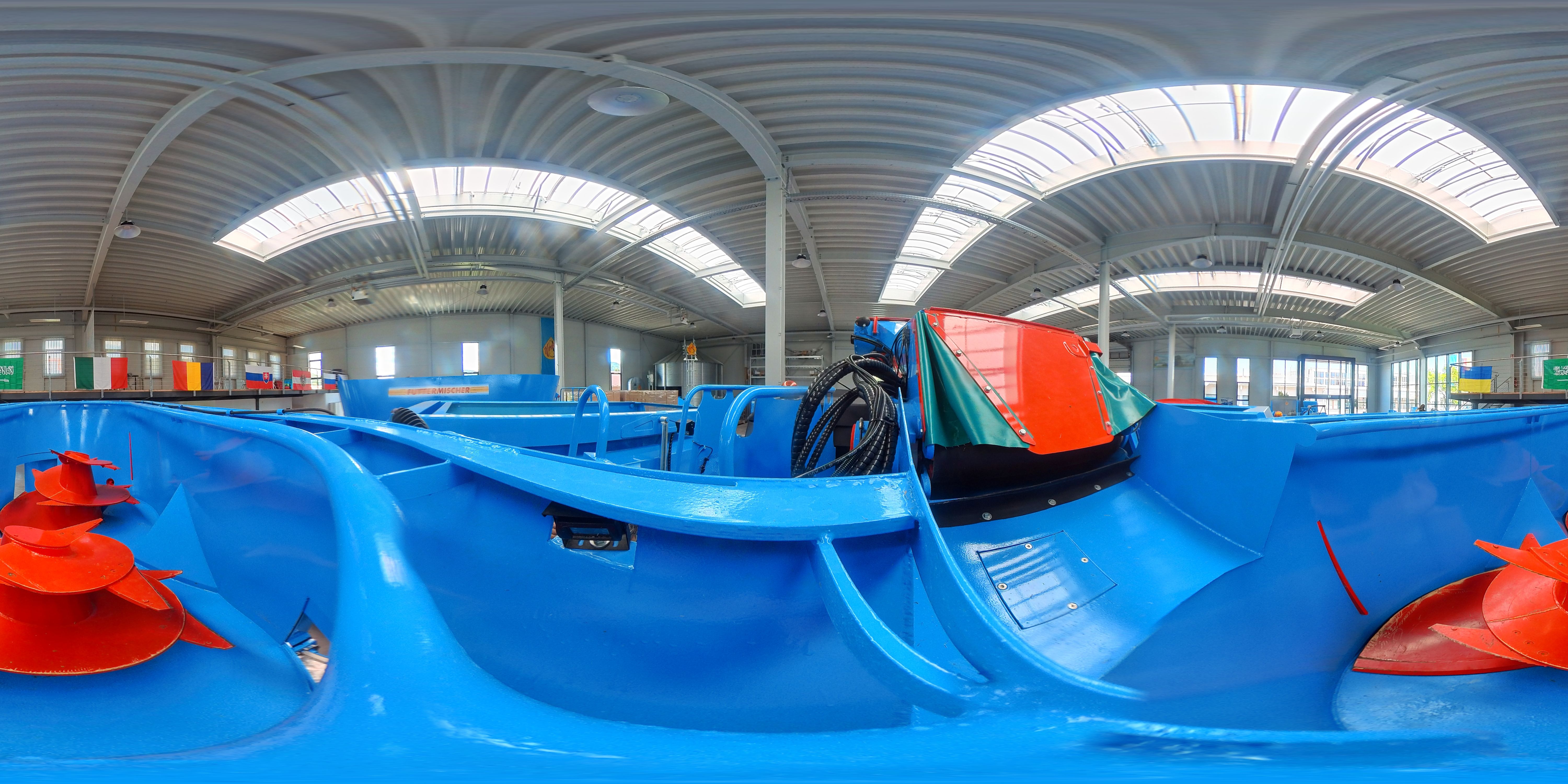 -Fraiseuse 2m prête, 450Bar avec moteur SAI et pompe haute pression Linde +pompes Linde pour hydrostat, canal de fraisage 700mm de large. Le bras de la fraise est indépendant du tambour de la fraise. On peut inverser le sens de rotation du tapis de fraisage.